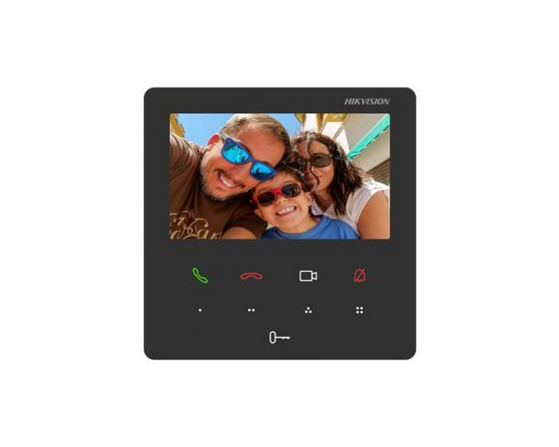Vnitřní monitory HikVision Vnitřní video + audio jednotka, dotyková tlačítka, alarmový vstup, 4.3" barevný TFT dotykový displej 480 x 272px, 5 hlavních ovládacích tlačítek + 4 nastavitelná tlačítka, Wifi, instalace na stěnu, vestavěný mikrofon a reproduktor, 1x LAN port 100 Mbps, Hik-connect, rozměry 120 x 120 x 21 mm, napájení 12VDC/PoE - 4W, zdroj není součástí