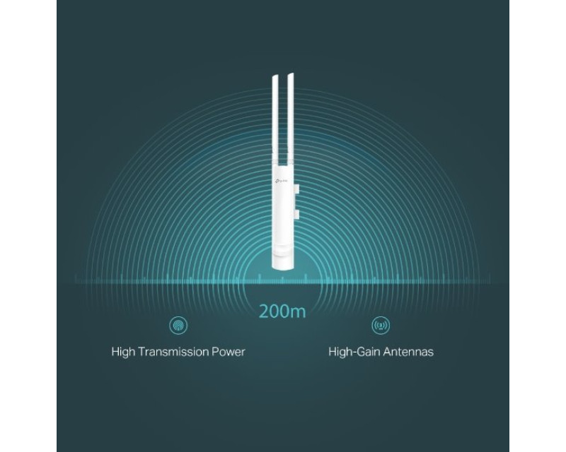 Přístupový bod má velký přenosový výkon a je vybavený 2 všesměrovými anténami s vysokým ziskem. Zajistí vám velmi stabilní pokrytí s dlouhým dosahem – až 200 m. Rozsah se může v praxi lišit podle prostředí, přijímacím zařízení a dalších podobných podmínek.