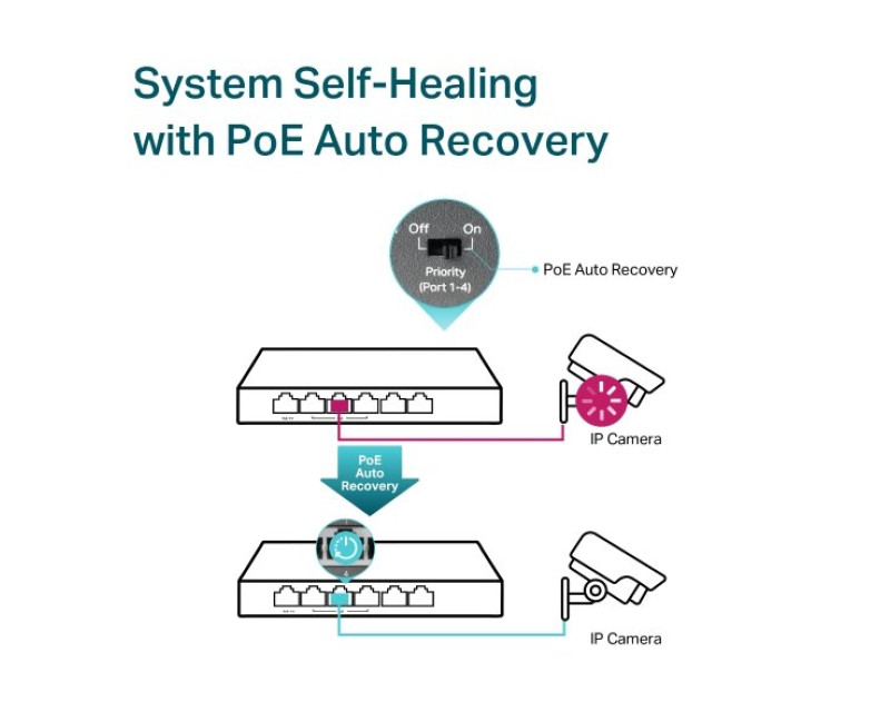 Přepnulo se vaše zařízení do offline režimu, nastala chyba nebo nereaguje? Funkce automatického obnovení PoE se postará o restart těchto zařízení, která jsou připojená a napájená přes PoE. Jejich provoz je stabilní a nemusíte se skoro o nic starat.