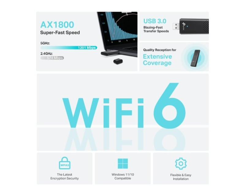 Model TX20U připojíte rychle a bez potíží díky předinstalovanému ovladači. Je kompatibilní s operačními systémy Windows 11/10. Šifrování WPA3 chrání váš počítač před hackerskými útoky a udrží vaše cenná data v bezpečí.