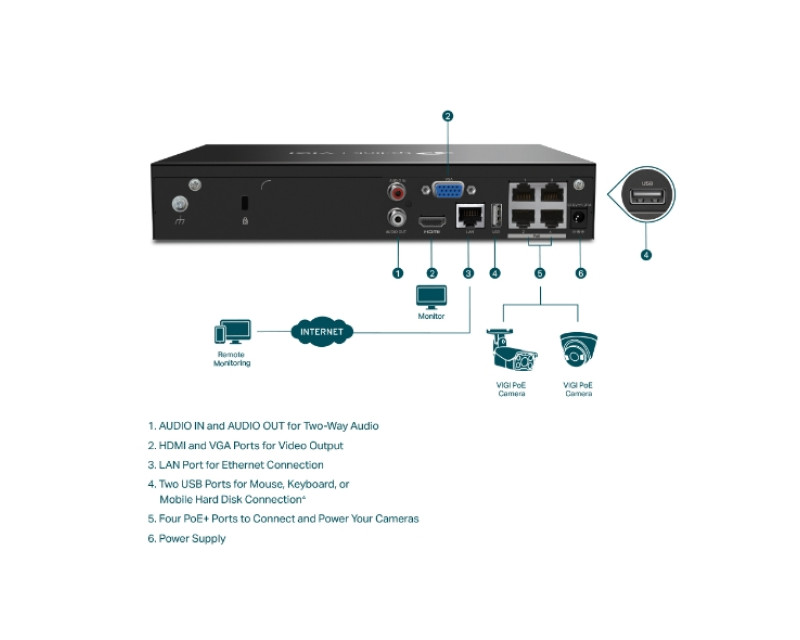 Záznamové zařízení TP-Link VIGI NVR1004H-4P-2TB 4 kanálů, 4x Lan s PoE, 2x USB, 2TB HDD
