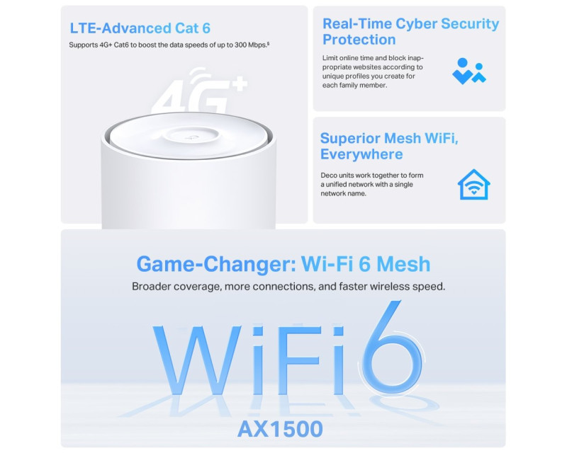 Modem TP-Link Deco X10-4G(1-pack) LTE6 s WiFi routerem, AX1500, WiFi 6, 3x GLAN, 2,4/5GHz