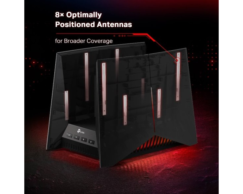 Technologie Wi-Fi 7 zaručuje neuvěřitelný výkon. Oproti předchozím verzím tohoto rozhraní vám poskytne rychlejší propustnost, nízkou latenci a vyšší účinnost datových přenosů. Širší pokrytí signálem zajišťuje 8 optimálně umístěných antén. Komínová struktura efektivně odvádí teplo.