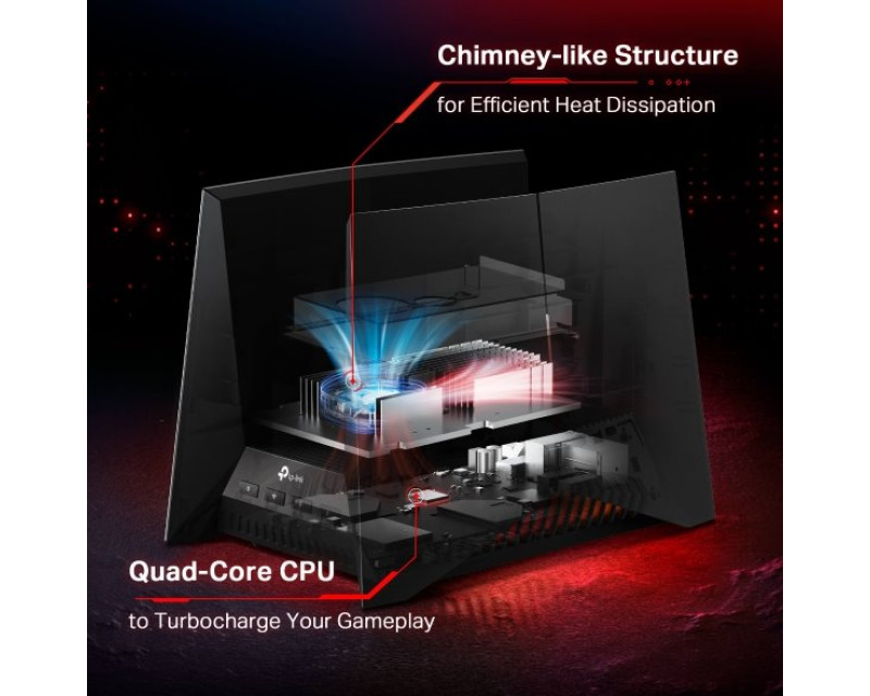 Router je vybavený technologií QoS. Detekuje a optimalizuje herní streamy, čímž zrychluje herní aplikace. Navíc automaticky upřednostňuje herní zařízení připojená v herním portu. Zrychluje také připojení k herním serverům pomocí GPN (Gamers Private Network). Přesměrování portů zajišťuje bezproblémovou komunikaci mezi herní konzolí/počítačem a herním serverem.