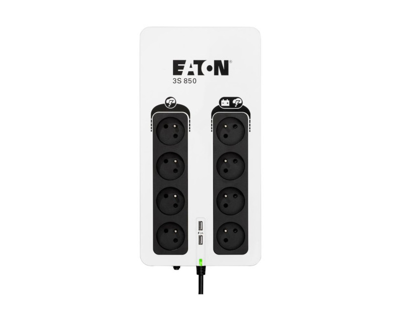 UPS Eaton 3S pomáhá chránit vaši výpočetní techniku v případě výskytu nežádoucích jevů a událostí, jako jsou atmosférické výboje, bouřky, přetížení rozvodné sítě, poruchy a živelné události, způsobující bez předchozího varování výpadky napájení z elektrorozvodné sítě. Při úplném výpadku poskytuje UPS záložní napájení z baterie až třem z šesti připojitelných zařízení. Díky atraktivnímu designu a líbivé povrchové úpravě UPS 3S dokonale zapadne do moderního kancelářského prostředí.
