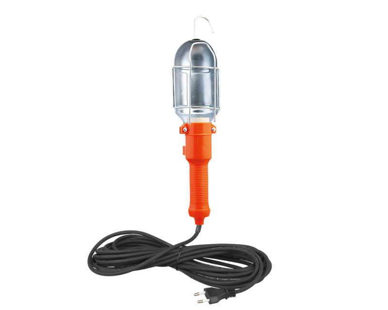 Klasická pracovní svítilna pro žárovku s paticí E27 (max. 60W) je vhodná pro dílny, sklepy nebo garáže. Je vybavena kovovým hákem pro zavěšení a ochrannou kovovou mřížkou. Díky vypínači na těle svítilny je její použití jednoduché a bezpečné.