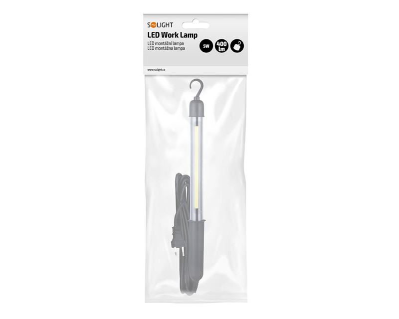 Výkonná pracovní svítilna s 5W COB LED zdrojem poskytuje silný světelný tok 400 lm. Je ideální pro osvětlování pracovních ploch v garáži, dílně nebo na stavbě. Disponuje otočným hákem pro zavěšení a 5metrovým napájecím kabelem.