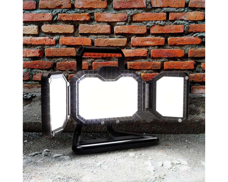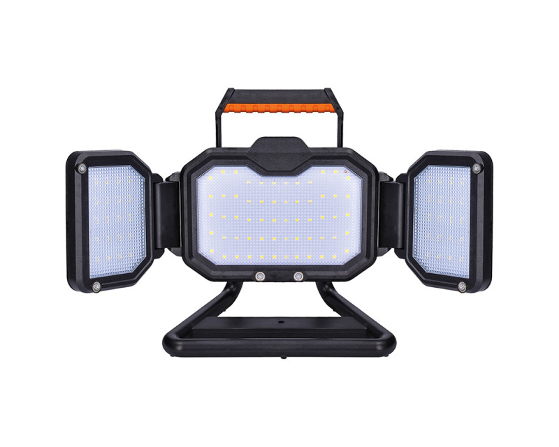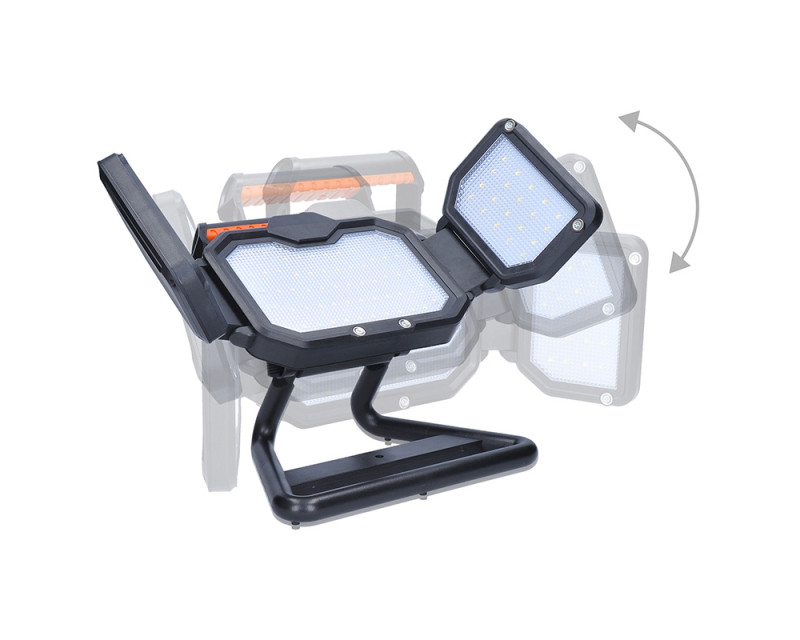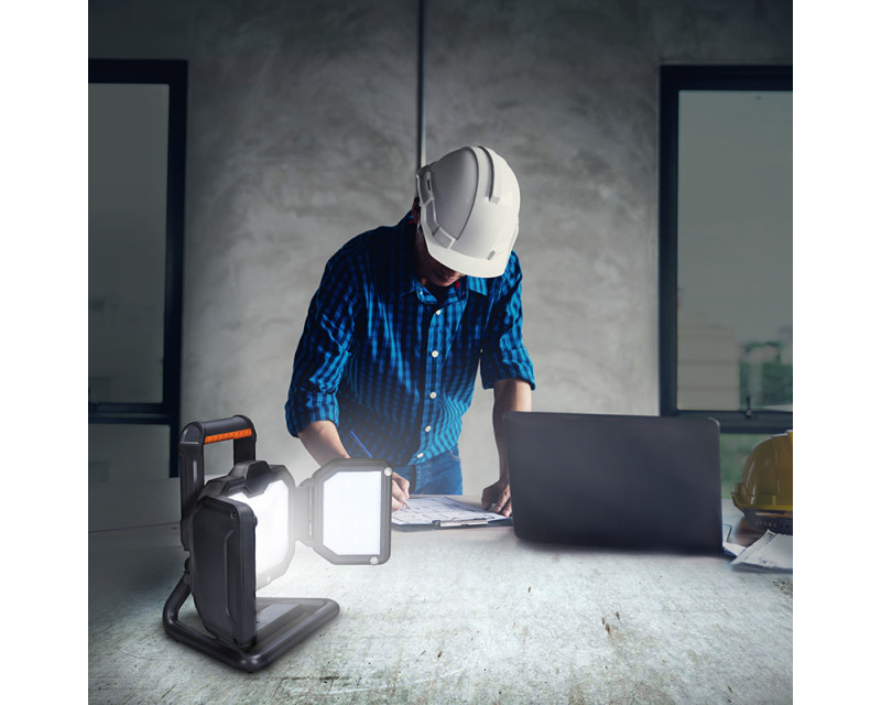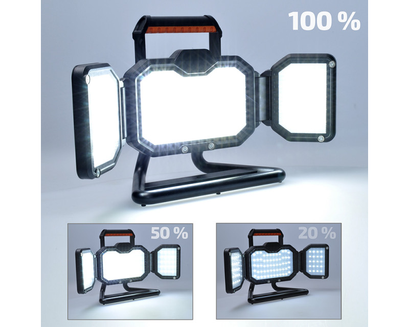 Maximální světelný výkon a absolutní mobilita – to je přenosný LED reflektor s výkonem 50W, světelným tokem až 5000 lm a integrovanou Li-Ion baterií s kapacitou 12000mAh. Nabízí tři režimy svícení (100 %, 50 %, 20 %) a výdrž až 10 hodin na jedno nabití.
