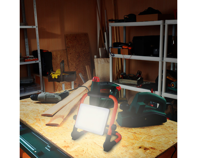 Výkonný LED reflektor s praktickým sklopným stojanem je ideální volbou pro osvětlení pracovních ploch ve vnitřních i venkovních podmínkách. Díky výkonu 30W a světelnému toku 2700 lumenů poskytuje intenzivní a rovnoměrné světlo v neutrální bílé barvě (4000K), které neunavuje oči a umožňuje precizní práci.