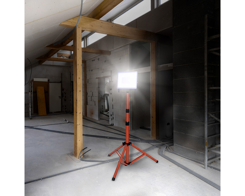 Profesionální LED pracovní světlo s výkonným 100W čipem a světelným tokem 9000 lm je upevněno na teleskopickém stojanu s výškou 80–162 cm. Ideální pro staveniště, servisní práce nebo osvětlení větších prostor. Nabízí neutrální bílé světlo (4000K) a úhel svícení 120°.