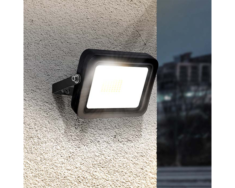 Tento 50W LED reflektor se světelným tokem 4600 lumenů a studenou bílou barvou světla (5000K) je ideální pro místa, kde je potřeba ostré a intenzivní osvětlení – jako jsou sklady, příjezdy nebo bezpečnostní zóny.