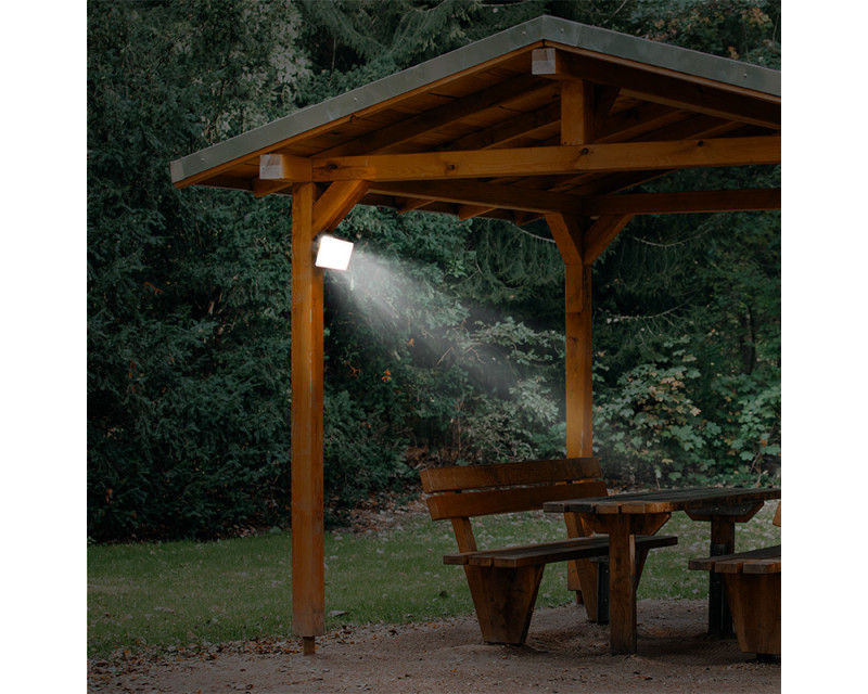 LED reflektor s neutrálním bílým světlem (4000K), světelným tokem 850 lm a odolnou konstrukcí je vhodný pro venkovní instalace s vyššími nároky na připojení. Součástí je voděodolný připojovací konektor (pro kabel 4–8 mm), který usnadňuje bezpečné napojení elektřiny.