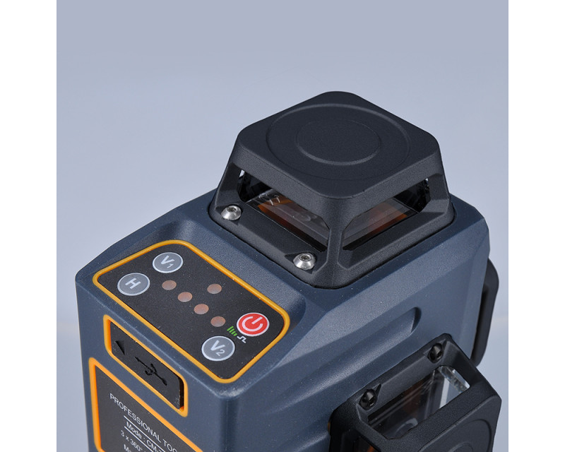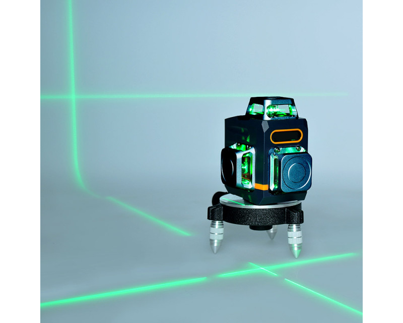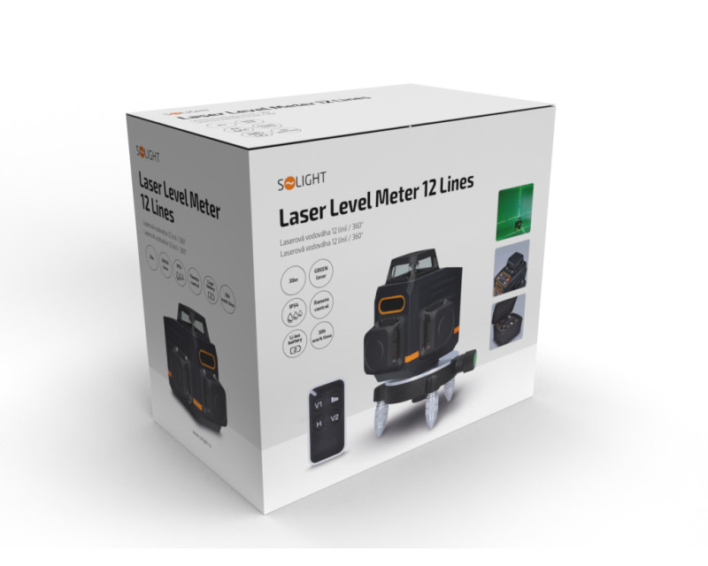 Profesionální laserová vodováha se zeleným laserem s 12 liniemi v rozsahu 360° pro maximální přesnost. Nabízí 1 horizontální a 2 vertikální paprsky, samonivelační režim i možnost libovolného úhlu. Dosah paprsku až 30 m, přesnost ±0,3mm/1m. IP54 krytí zajišťuje odolnost proti prachu a vlhkosti. Pracovní doba až 30 hodin, lithiová baterie 3,7V 4000mAh. Dálkové ovládání s dosahem až 80 m. Obsah balení: vodováha, stativ, držák, terčík, dálkový ovladač, brašna, napájecí kabel a návod.