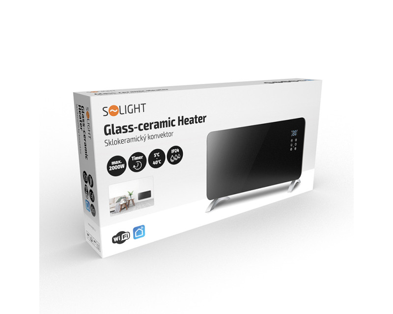 Solight horkovzdušný konvektor sklokeramický 2000W, WiFi, LCD, nastavitelný termostat, časovač