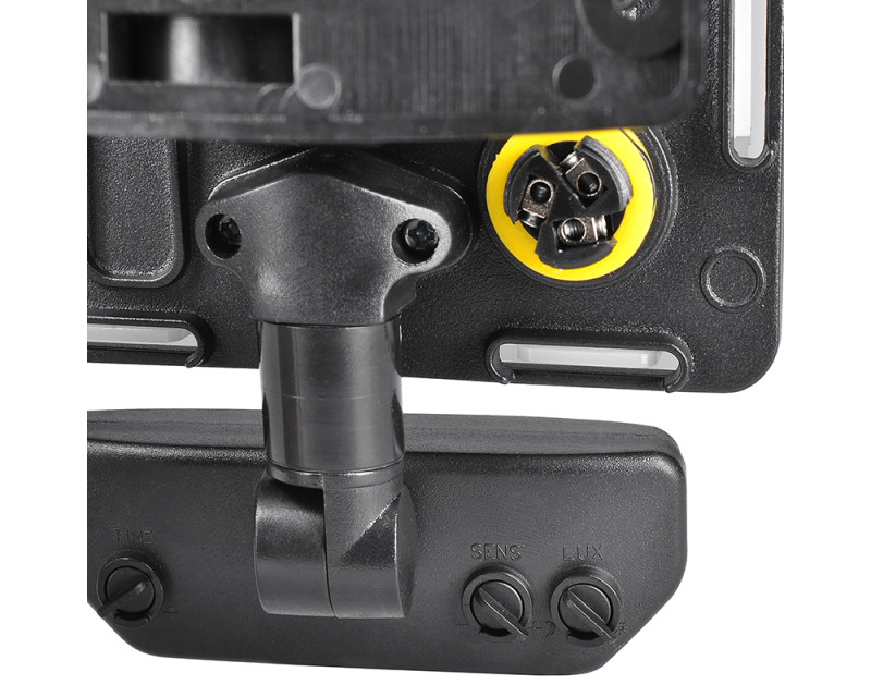 Možnost nastavení času svícení (5 s – 10 min) a světelné citlivosti (3–2000 lux). K dispozici je voděodolný připojovací konektor pro kabel o průměru 4–8 mm. Tělo z hliníku, krytí IP44. Rozměry: 115 × 95 × 45 mm. Napájení: AC 220–240 V, 50 Hz. Energetická třída: F.