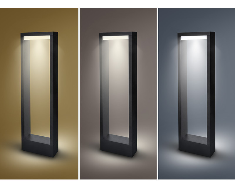 Sloupková varianta LED svítidla Ragusa přináší stejné funkce jako nástěnná verze, avšak ve formátu ideálním pro umístění podél cest, do zahrad, k terasám nebo k příjezdům. Svítidlo nabízí možnost volby chromatičnosti (3000K / 4000K / 6000K) pomocí integrovaného přepínače a poskytuje světelný tok 450 lm s rovnoměrným rozptylem díky úhlu 120°.