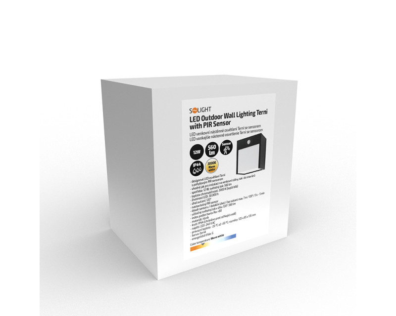 Solight LED venkovní nástěnné osvětlení Terni, 12W, 560lm, 3000K, PIR sensor