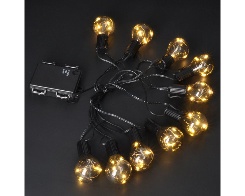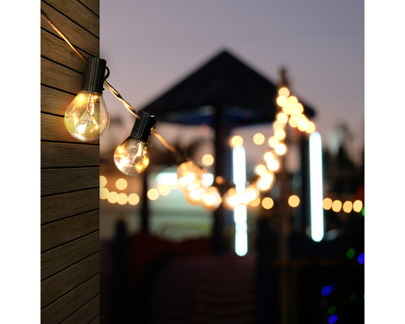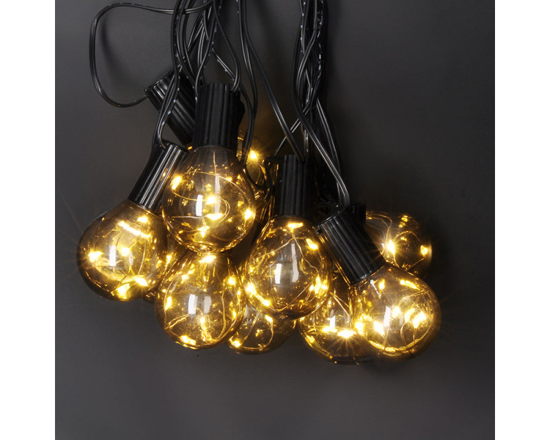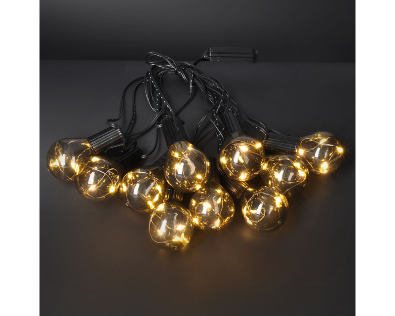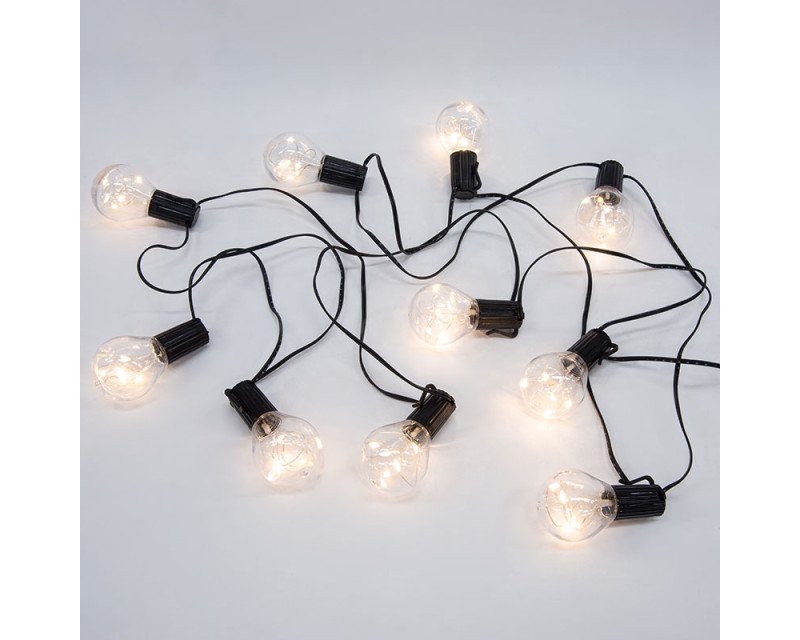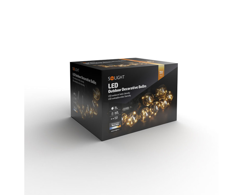 Elegantní venkovní dekorativní řetěz s LED žárovkami vytváří stylové osvětlení pro zahrady, terasy nebo altány. Řetěz obsahuje 10 žárovek a celkem 50 LED diod s teple bílým světlem, které v kombinaci se vzhledem klasických žárovek vytvářejí útulnou atmosféru. Díky délce osvětlené části 2,7 m a přívodnímu kabelu 0,5 m lze dekoraci snadno umístit podle potřeby.