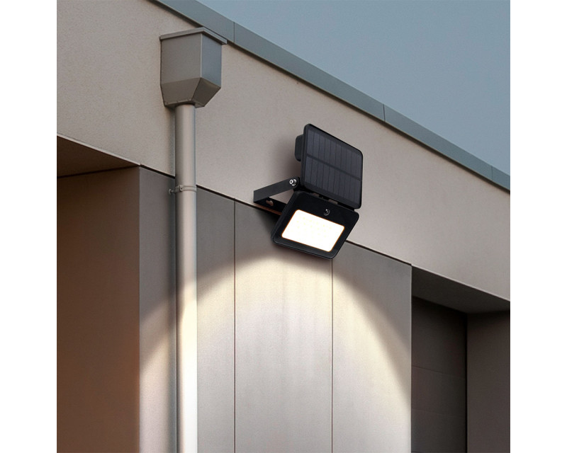Světlo nabízí 3 režimy svícení (100 %, 50 %, 20 %) s intervalem 30 sekund. Vestavěná Li-Ion baterie (3,7V / 2200mAh) se plně nabije během cca 7 hodin. Rozměry reflektoru i solárního panelu jsou 143 × 98 × 21 mm. Krytí IP65 zajišťuje vysokou odolnost vůči povětrnostním vlivům. Barva: černá.
