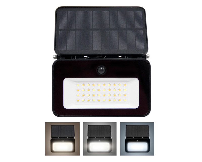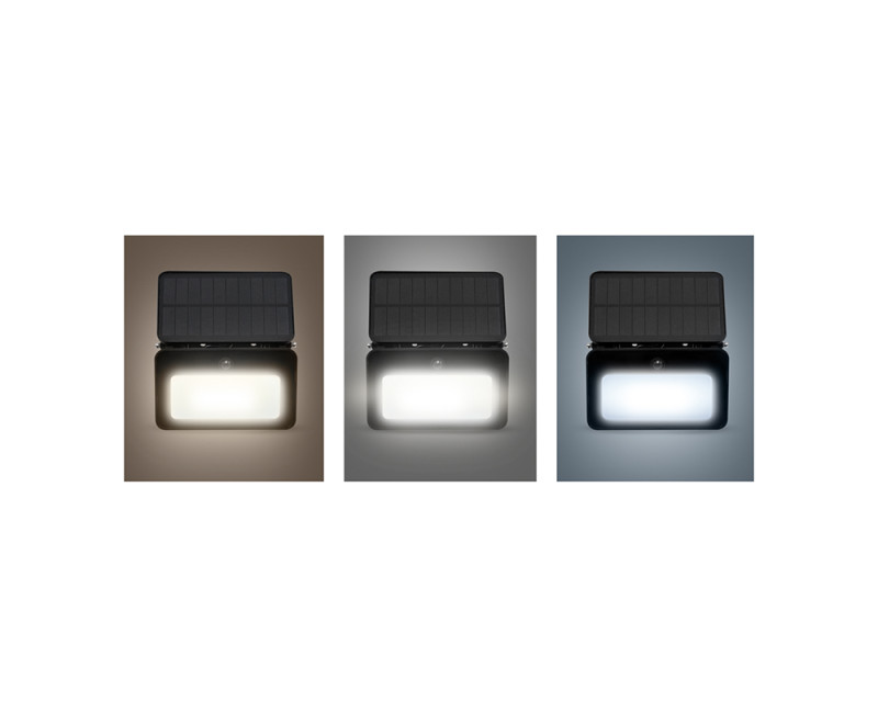 Efektivní a úsporné LED solární světlo s nastavitelnou teplotou světla (3000K, 4000K nebo 6500K) je ideální pro venkovní osvětlení prostor bez přívodu elektřiny – například u vchodů, branek, na dvorech či parkovacích stáních. Disponuje náklopným solárním panelem a pohybovým senzorem s detekcí až 6 metrů a úhlem 120°.