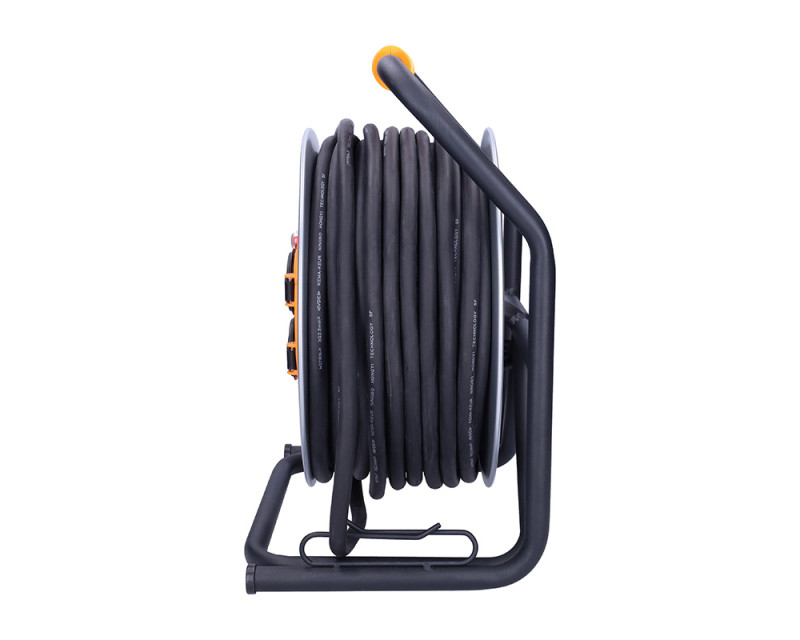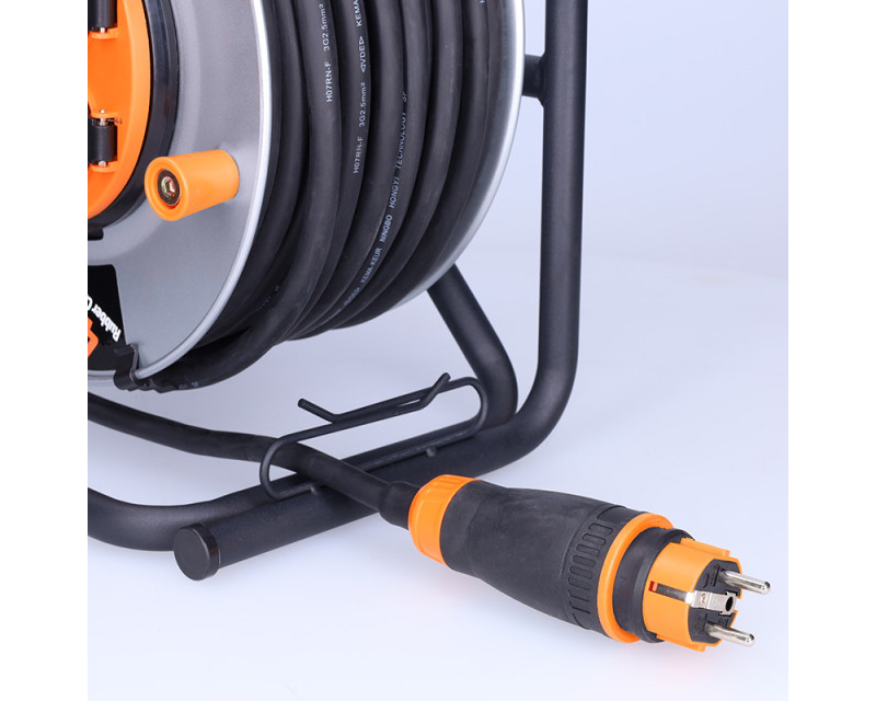 Buben umožňuje připojení až čtyř elektrických zařízení. Díky vodiči o průřezu 2,5 mm2 zvládne trvalé zatížení až 3680 W (16 A / 230 V~). Délka kabelu 25 m poskytuje maximální flexibilitu při práci v interiéru i exteriéru. Samovolnému navíjení brání integrovaná aretační brzda.