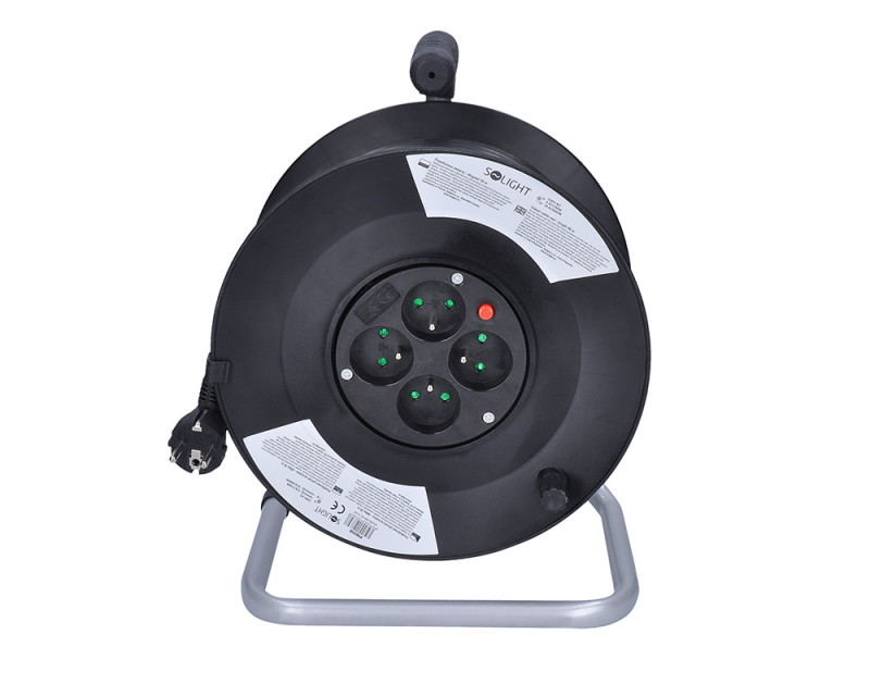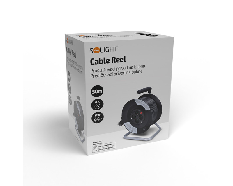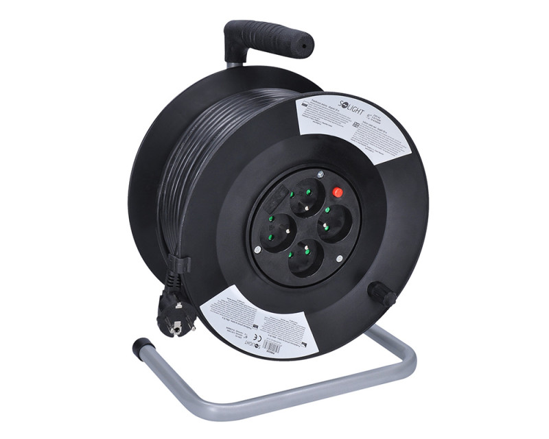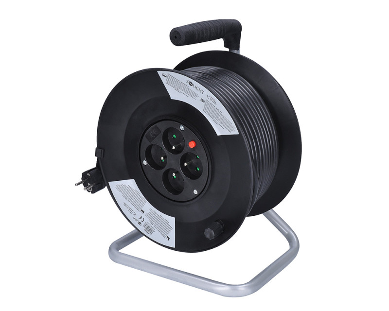 Solight prodlužovací přívod na bubnu, 4 zásuvky, 50m, černý kabel, 3x 1,5mm2