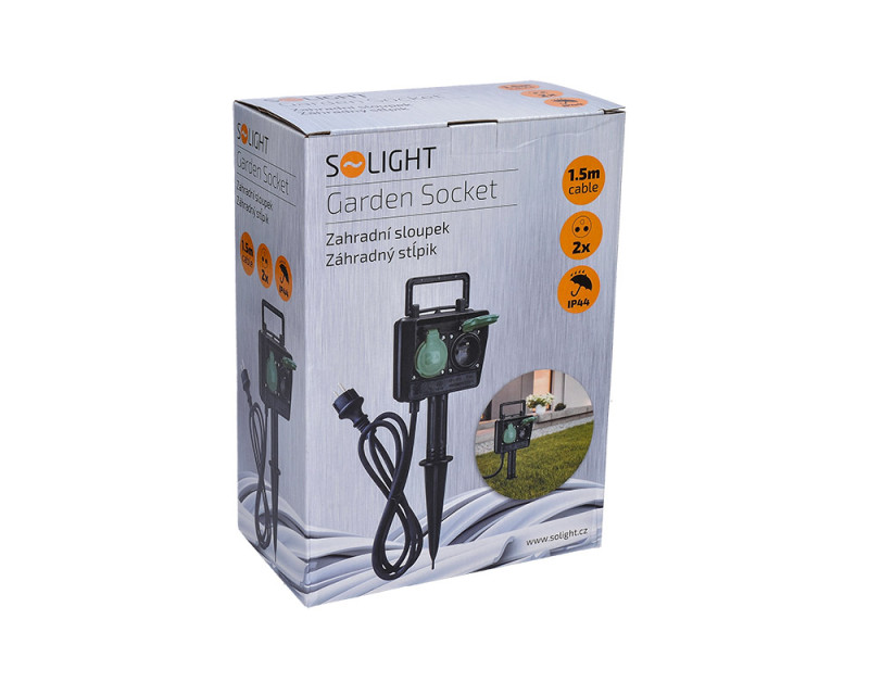 Solight zahradní sloupek IP44, 2 zásuvky, gumový kabel 1,5m