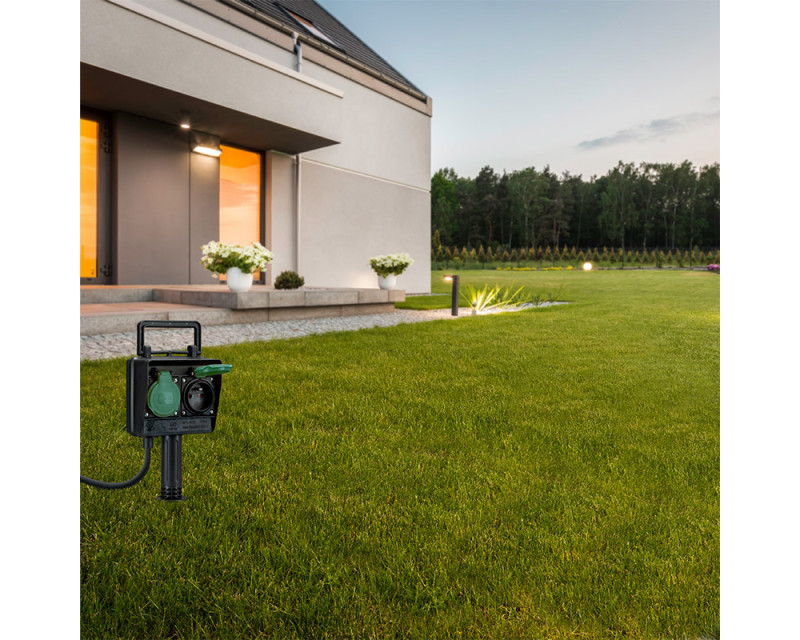 1,5 metru dlouhý gumový kabel typu s vodiči o průřezu 3×1,5 mm2 zajišťuje maximální příkon až 3680 W (16 A při 230 V~). Zvládne tak i energeticky náročnější zařízení. Černé provedení se zelenými krytkami zásuvek nenápadně zapadne do každé zahrady.