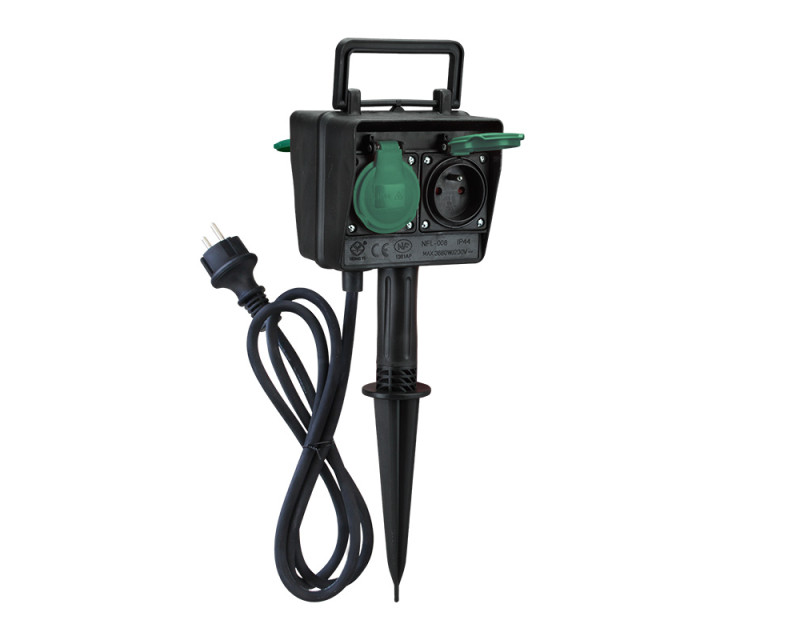 1,5 metru dlouhý gumový kabel typu s vodiči o průřezu 3×1,5 mm2 zajišťuje maximální příkon až 3680 W (16 A při 230 V~). Zvládne tak i energeticky náročnější zařízení. Černé provedení se zelenými krytkami zásuvek nenápadně zapadne do každé zahrady.