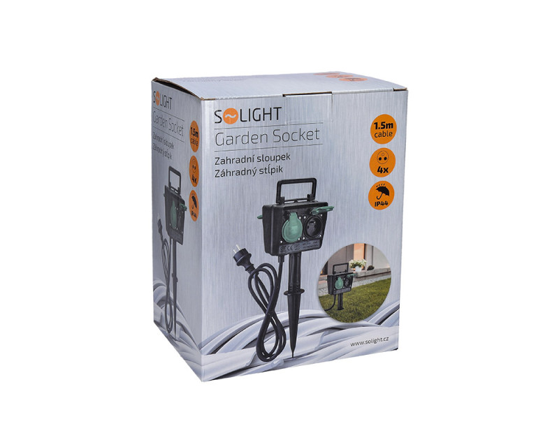 Sloupek je vybaven čtyřmi zásuvkami s krytkami, které chrání před vlhkostí, prachem i nečistotami. Díky stupni krytí IP44 odolá stříkající vodě a je vhodný pro venkovní prostředí. Hrot ve spodní části umožňuje snadné zapíchnutí do země a stabilní upevnění.