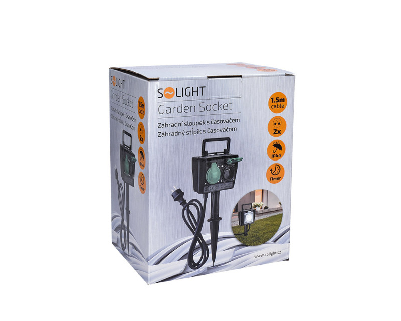 Solight zahradní sloupek IP44, 2 zásuvky + časový spínač, gumový kabel 1,5m