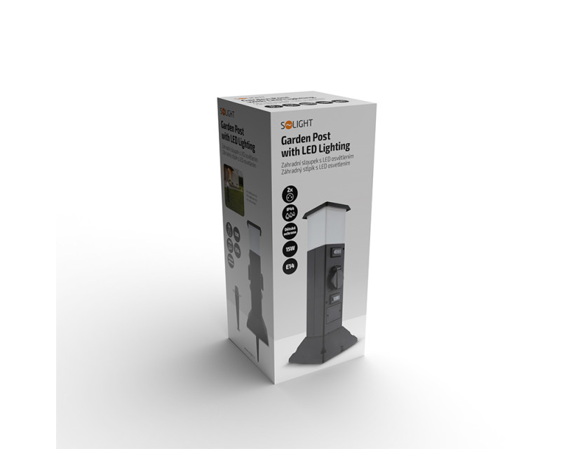 Solight zahradní sloupek IP44 s LED osvětlením, plast, 2 zásuvky, hranol, černý