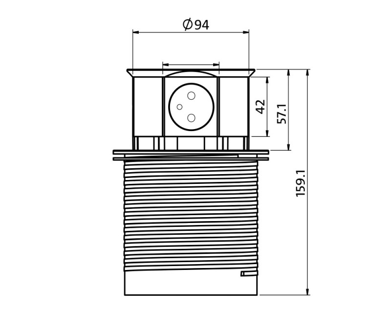 - výška výsuvné části nad stolem: 58mm; výška části pod stolem: 100mm