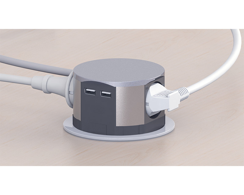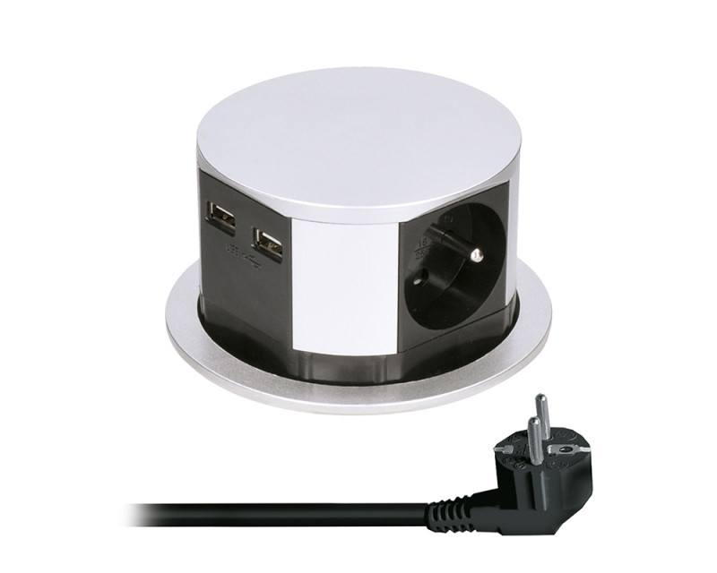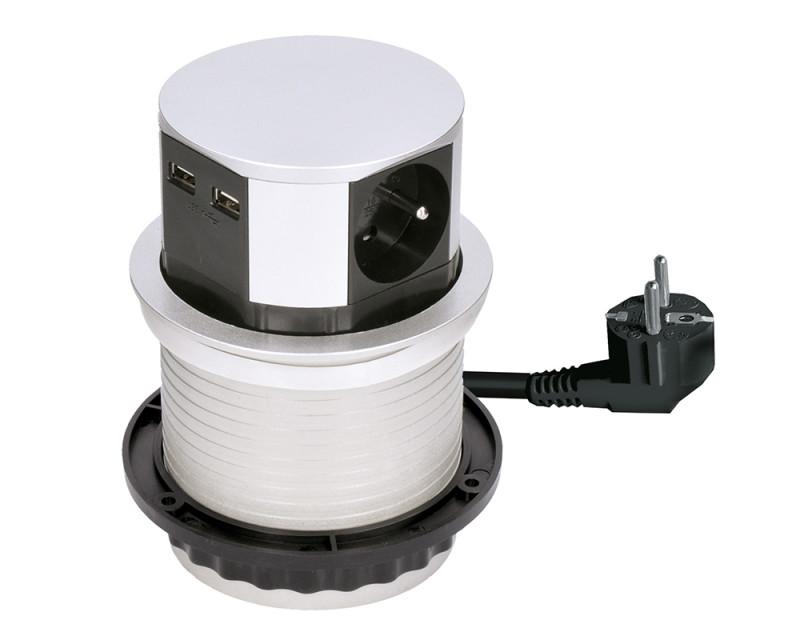 Výsuvný blok zásuvek se třemi 230V zásuvkami a integrovanou USB nabíječkou nabízí praktické řešení pro připojení spotřebičů i nabíjení zařízení přímo na pracovní ploše. Kruhové provedení s vrchním krytem ve stříbrné barvě působí moderně a nenápadně zároveň. Díky výsuvnému mechanismu zůstává blok skrytý, dokud ho nepotřebujete.