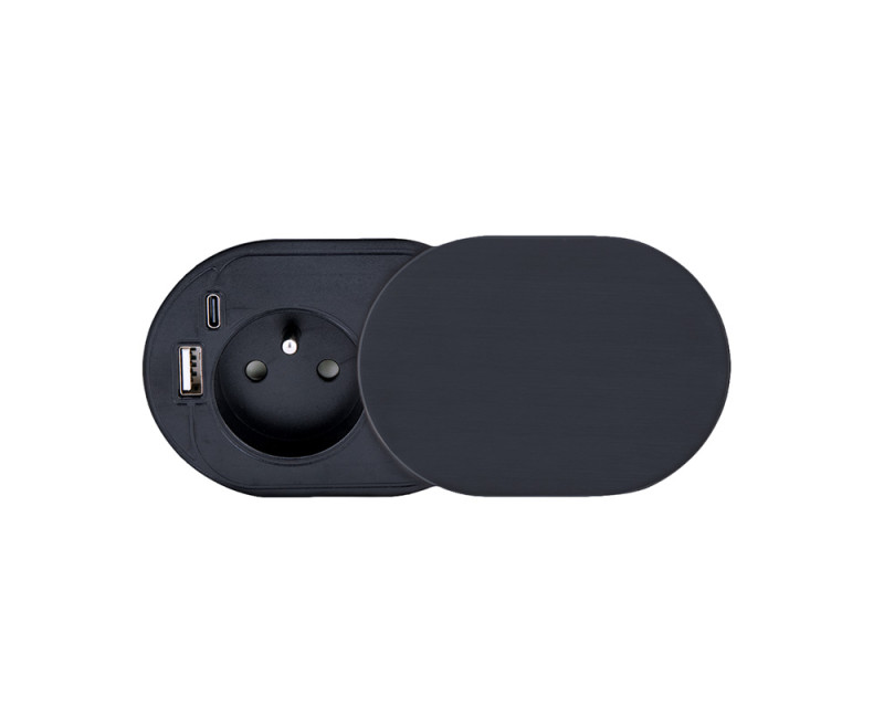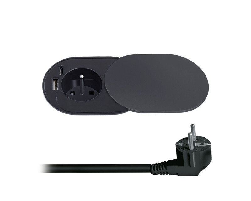 Solight vestavná zásuvka s posuvným víčkem, USB A+C nabíječka, 2m, matná černá