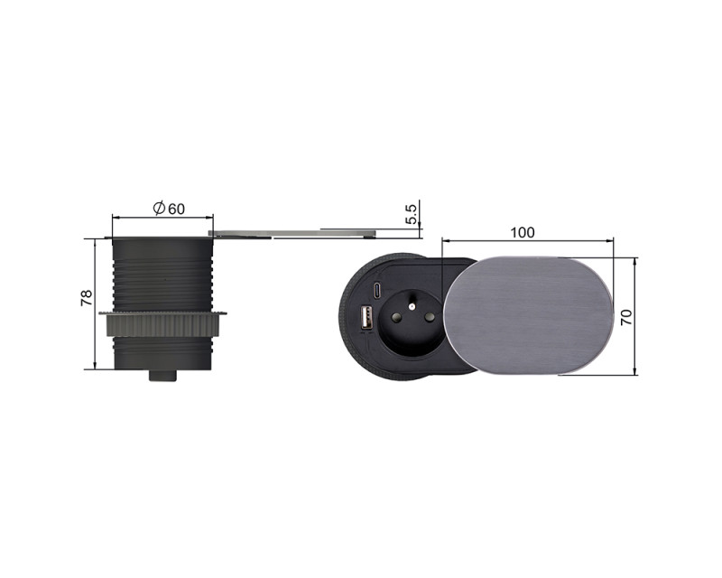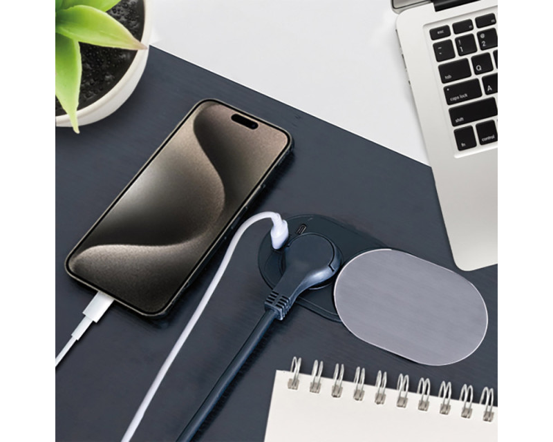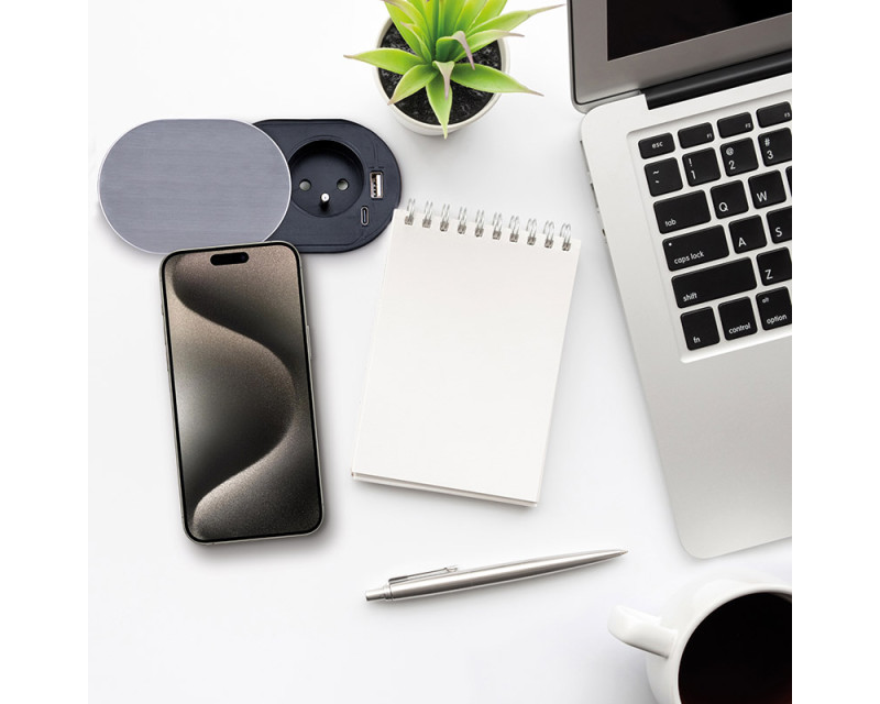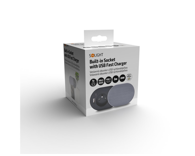 - vestavná elektrická zásuvka pro pracovní desky a stoly s USB rychlonabíječkou