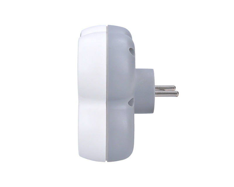 Zásuvky jsou vybaveny dětskou pojistkou, takže se nemusíte bát o bezpečnost doma. Kontrolka na těle přístroje vás informuje o tom, že je ochrana aktivní. Horní pootočená zásuvka usnadňuje manipulaci s přívodní šňůrou v zásuvce pod ní. Malé rozměry umožní snadné použití u pracovního stolu nebo třeba za televizí.