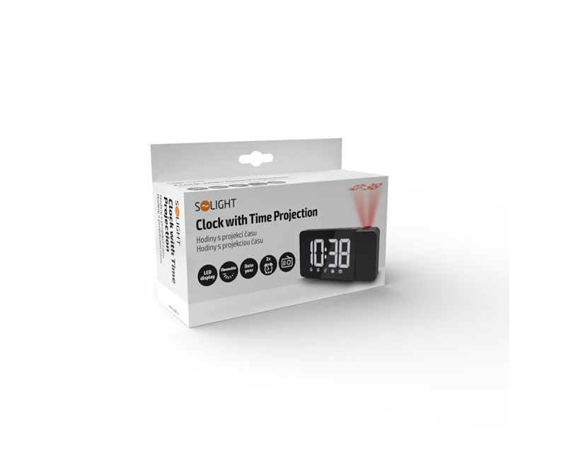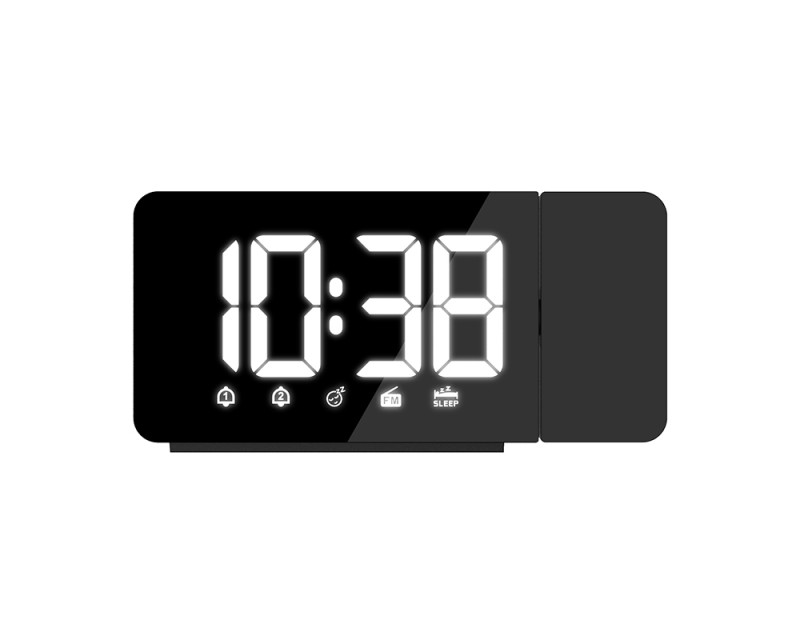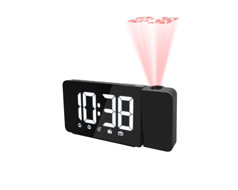 Tento budík s projekcí času na zeď nabízí velký LED displej s nastavitelnou intenzitou podsvícení a možností otáčení projektoru v rozsahu 0–180°. Umožňuje buzení rádiem nebo alarmem, má FM rádio s automatickým laděním stanic a funkci odloženého buzení (0–60 min). Díky třem úrovním projekce (vysoká, nízká, vypnuto) si přizpůsobíte zobrazení podle svých potřeb. Napájení DC5V (adaptér součástí) a záložní baterie CR2032 pro uchování nastavení.