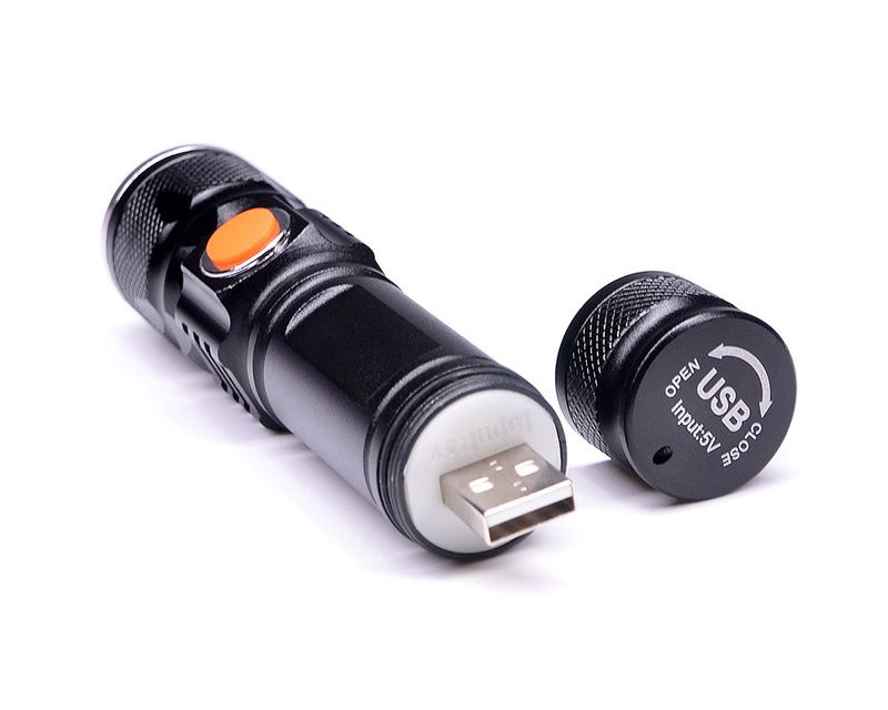 - nabíjecí LED kapesní svítilna s USB konektorem