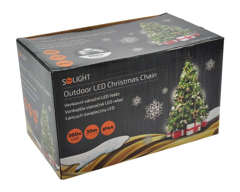 Solight LED vánoční řetěz, 300 LED, 30m, přívod 5m, IP44, bílá