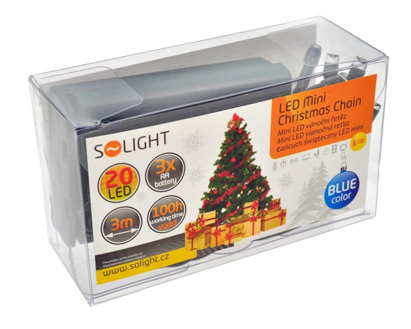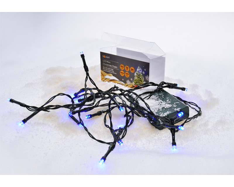 Solight LED vánoční řetěz, 3m, 20xLED, 3x AA, modré světlo, zelený kabel