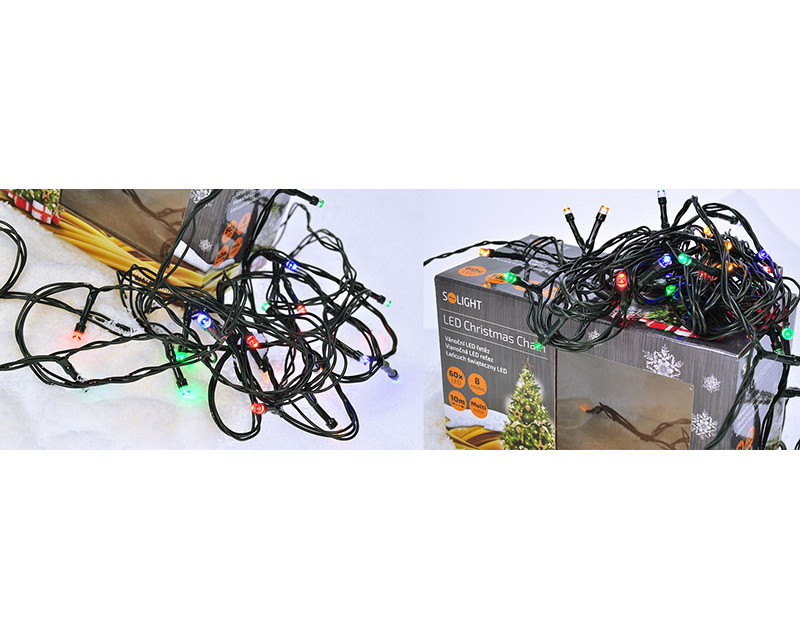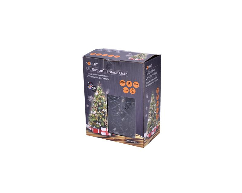 Solight LED venkovní vánoční řetěz, 200 LED, 20m, přívod 5m, 8 funkcí, časovač, IP44, vícebarevný