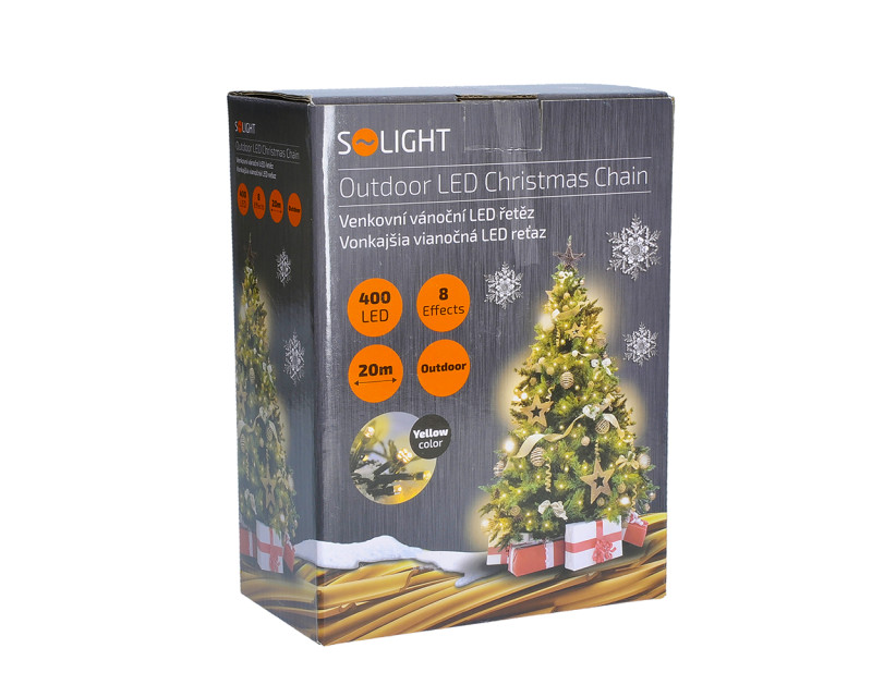 Solight LED venkovní vánoční řetěz, 400 LED, 20m, přívod 5m, 8 funkcí, IP44, teplá bílá