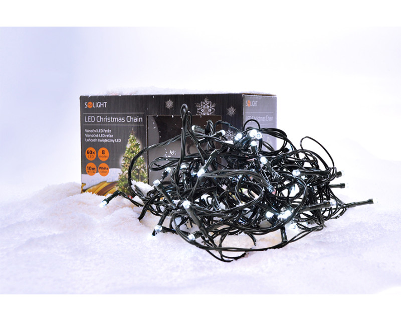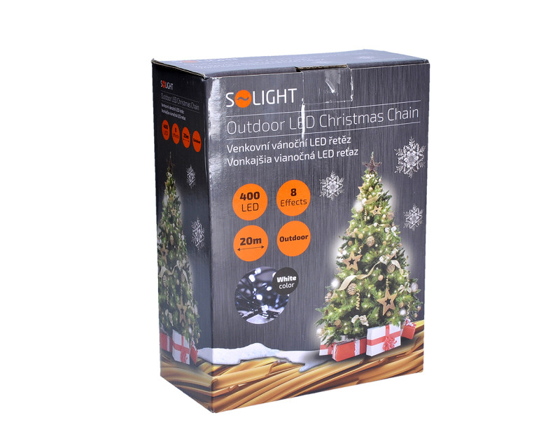 Solight LED venkovní vánoční řetěz, 400 LED, 20m, přívod 5m, 8 funkcí, IP44, studená bílá
