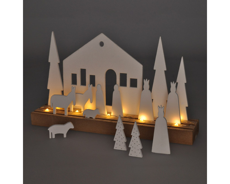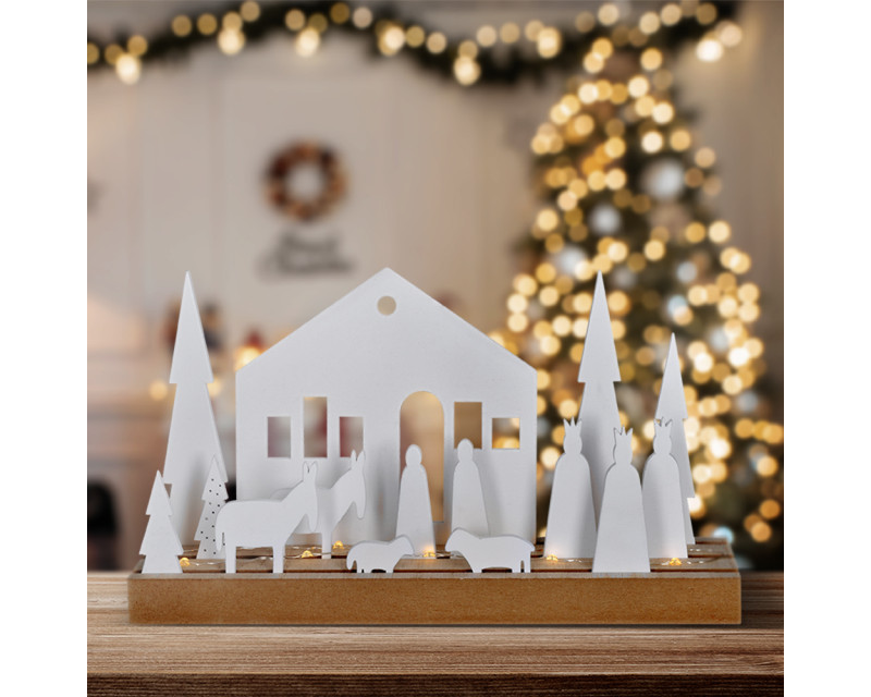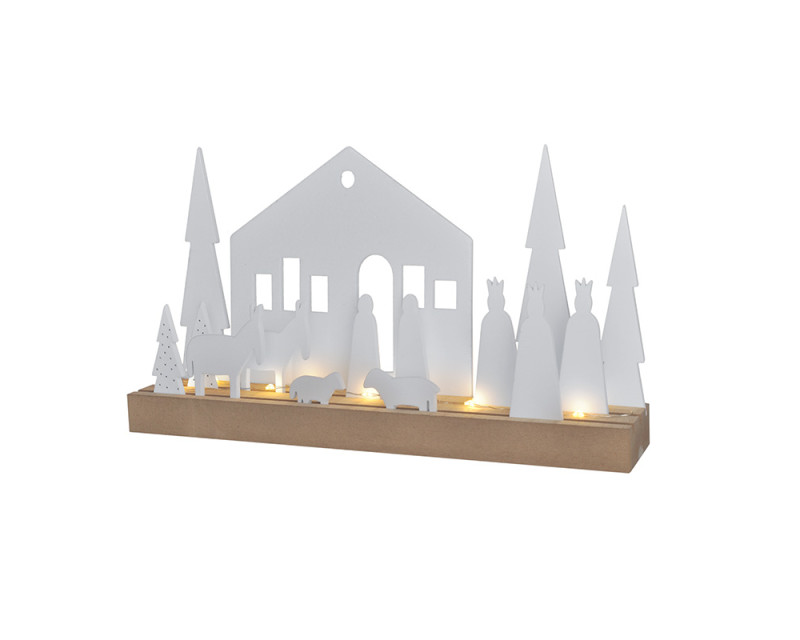 - LED modulární zimní vesnička s 15 vánočními prvky, které lze libovolně umístit na základnu