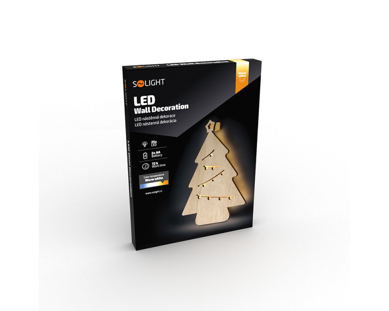 Solight LED nástěnná dekorace vánoční stromek, 24x LED, 2x AA