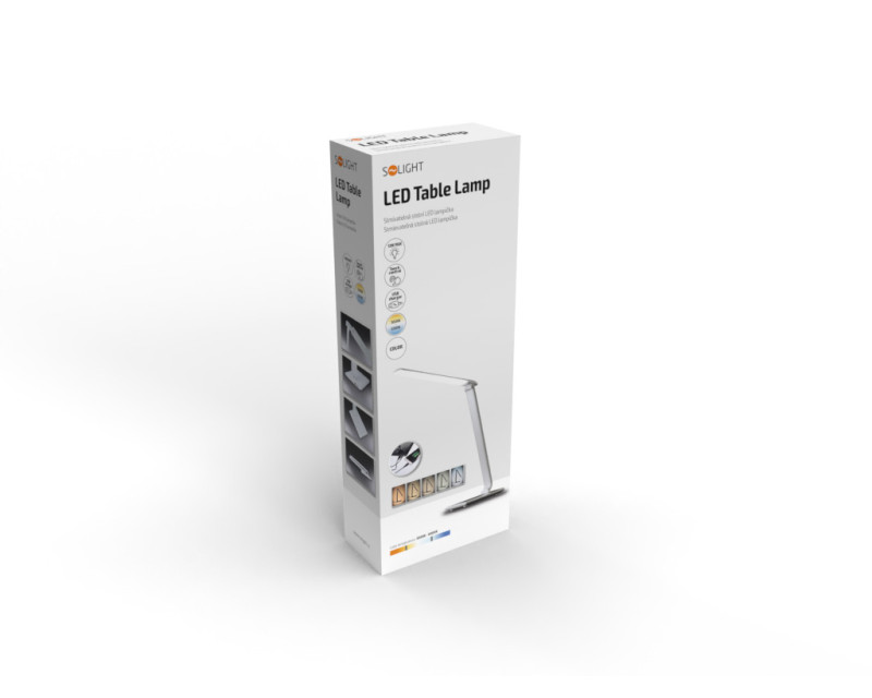 Solight LED stolní lampička stmívatelná, 12W, volba teploty světla, USB, bílý lesk