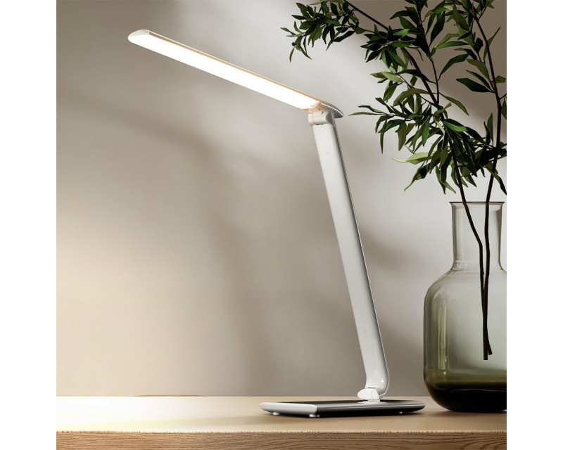 Stylová LED stolní lampička v bílém lesklém provedení přináší variabilní osvětlení i vysoký komfort při každodenním použití. Nabízí výběr z pěti teplot světla – od teplé po studenou bílou (3000K–6000K), a plynulé stmívání prostřednictvím dotykového ovládání. Skvěle se hodí pro práci, studium i večerní relaxaci.