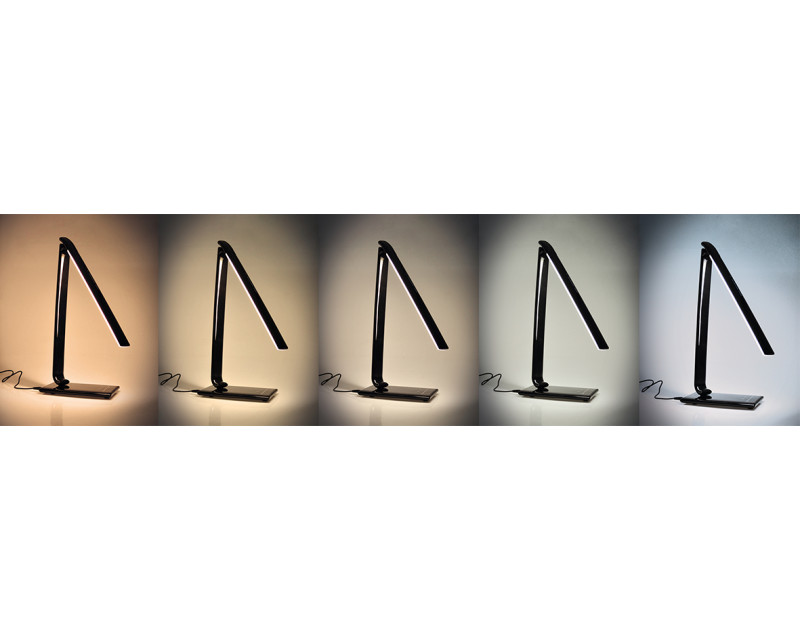 Elegantní stolní LED lampička v černém lesklém provedení nabízí kombinaci funkčnosti a moderního designu. Uživatel si může vybrat z pěti různých teplot světla v rozsahu od teplé po studenou bílou (3000K–6000K), což umožňuje ideální osvětlení pro čtení, práci i relaxaci. Dotykové ovládání nabízí plynulou regulaci jasu podle potřeby a pohodlí.
