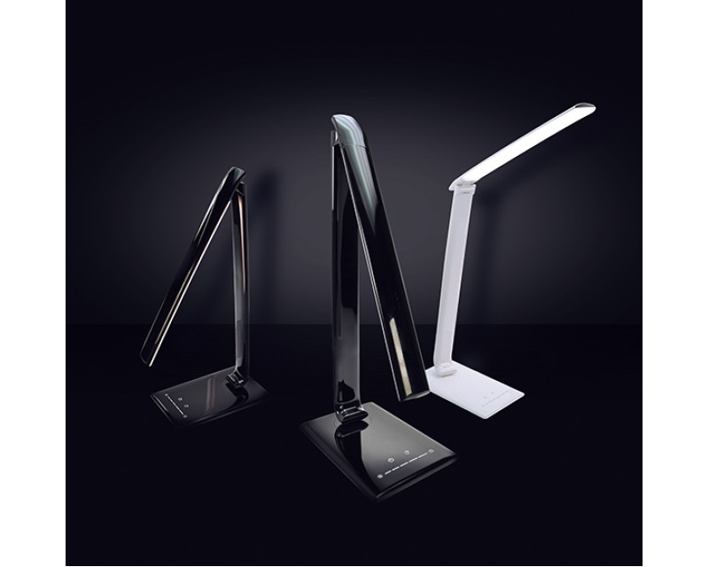 Solight LED stolní lampička stmívatelná, 12W, volba teploty světla, USB, černý lesk